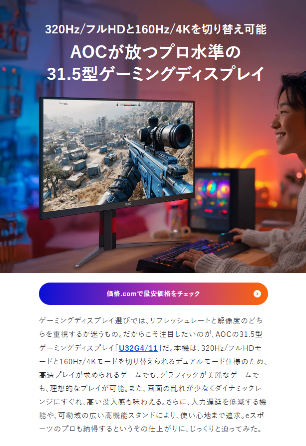 価格.com「AOC 31.5型ゲーミングディスプレイ U32G4/11」PR記事制作