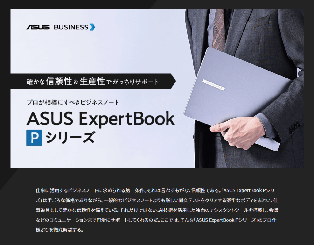 価格.comのPR記事、「プロが相棒にすべきビジネスノート「ASUS ExpertBook Pシリーズ」」を執筆いたしました。 プロが相棒にすべきビジネスノート「ASUS ExpertBook Pシリーズ」