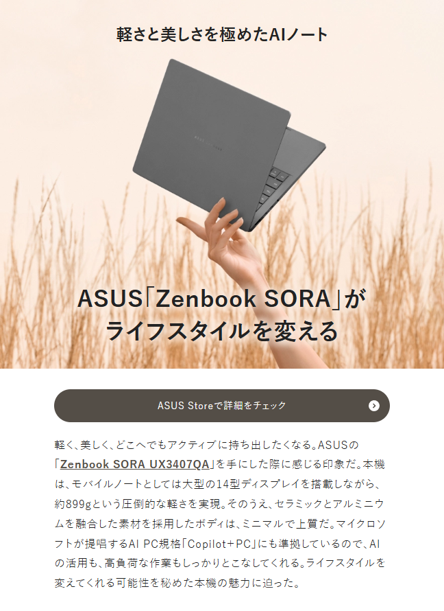 価格.comのPR記事、「ASUS「Zenbook SORA」がライフスタイルを変える」を執筆いたしました。