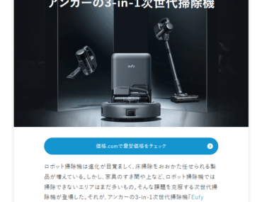 価格.com「アンカー Eufy Robot Vacuum 3-in-1 E20」PR記事制作
